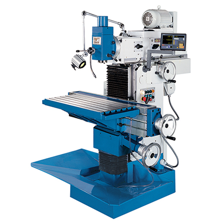 Станок WF 4.1 оснащён вертикальной фрезерной головкой c диапазоном поворота +/- 90°. Проградуированная шкала облегчает настройку рабочего угла. Большая пиноль с рабочим ходом 80 мм и механическим зажимом. Использование горизонтального фрезерного устройства возможно после быстрого демонтажа вертикальной фрезерной головки посредством поворотного устройства, перемещения верхней балки и установки серьги. Перенастройка станка производится за короткий промежуток времени. В том числе станок оснащён автоматической подачей и быстрым ходом по всем трём координатам. Включение и выключение подачи по осям X и Z осуществляется одним и тем же рычагом. Поперечная подача по оси Y управляется отдельным рычагом расположенным на консоли. Кроме того перемещение по координатам возможно в механическом режиме при помощи маховичков онащенными измерительными шкалами.
